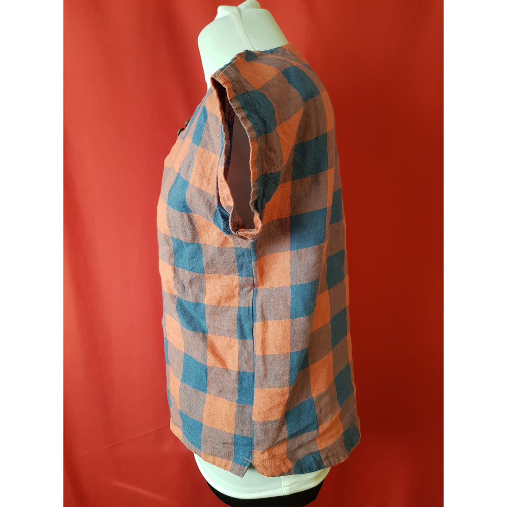 Celtic & Co Women's Blue Terracotta Check Linen Top Size 8