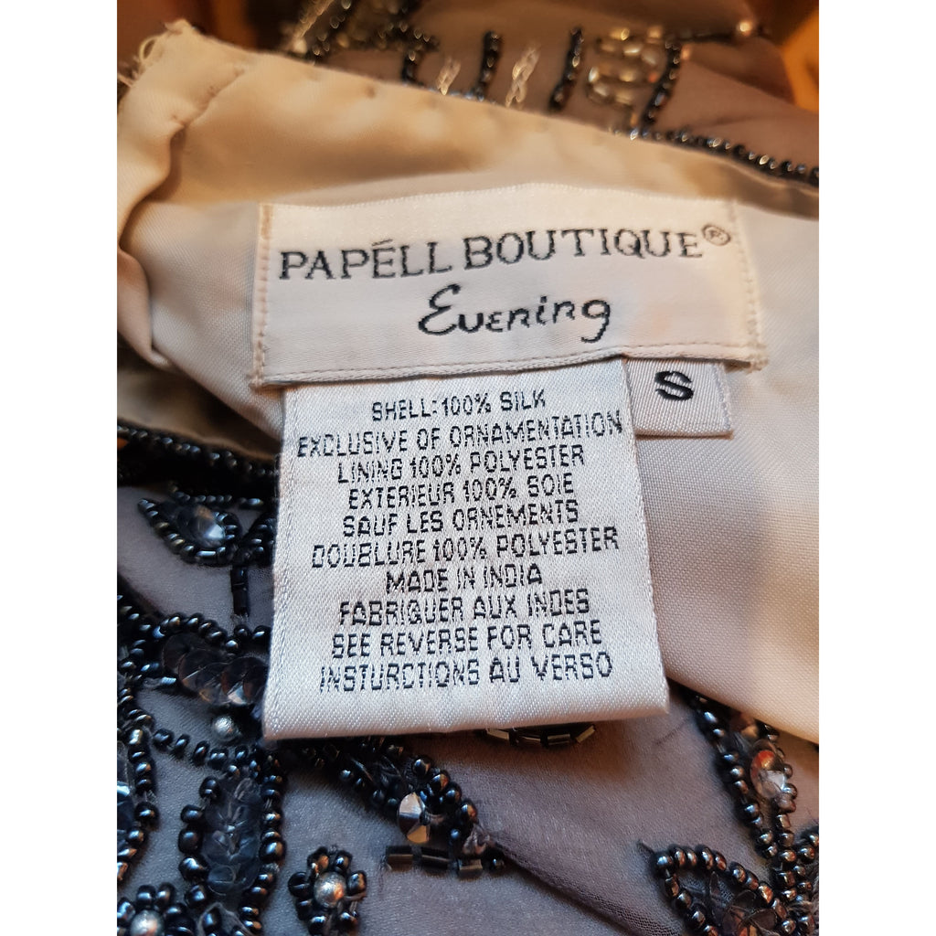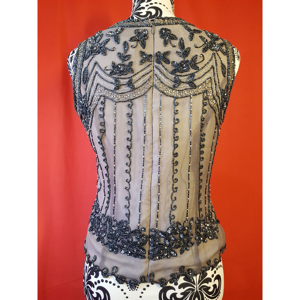 Papell Boutique Women's Black Grey Beaded Silk Top Size S