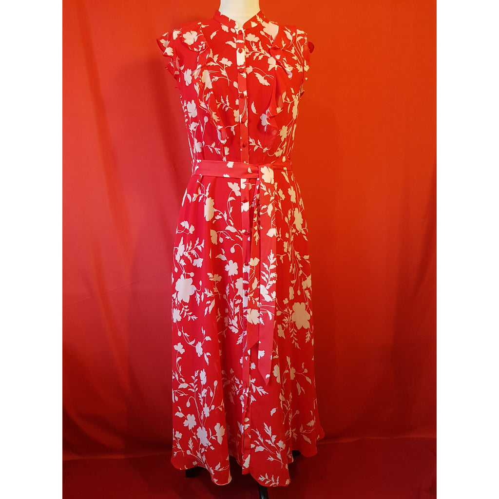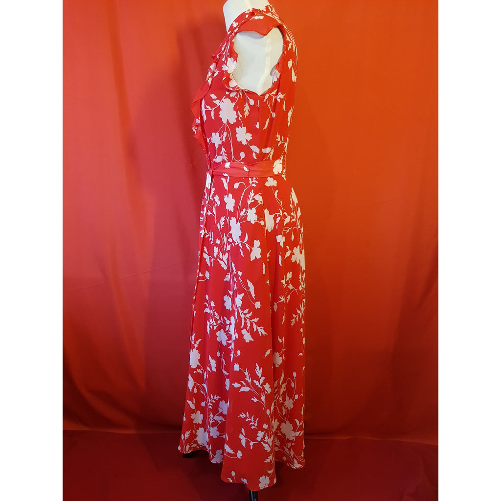 Hobbs Red White Floral Print Long Dress Size 12