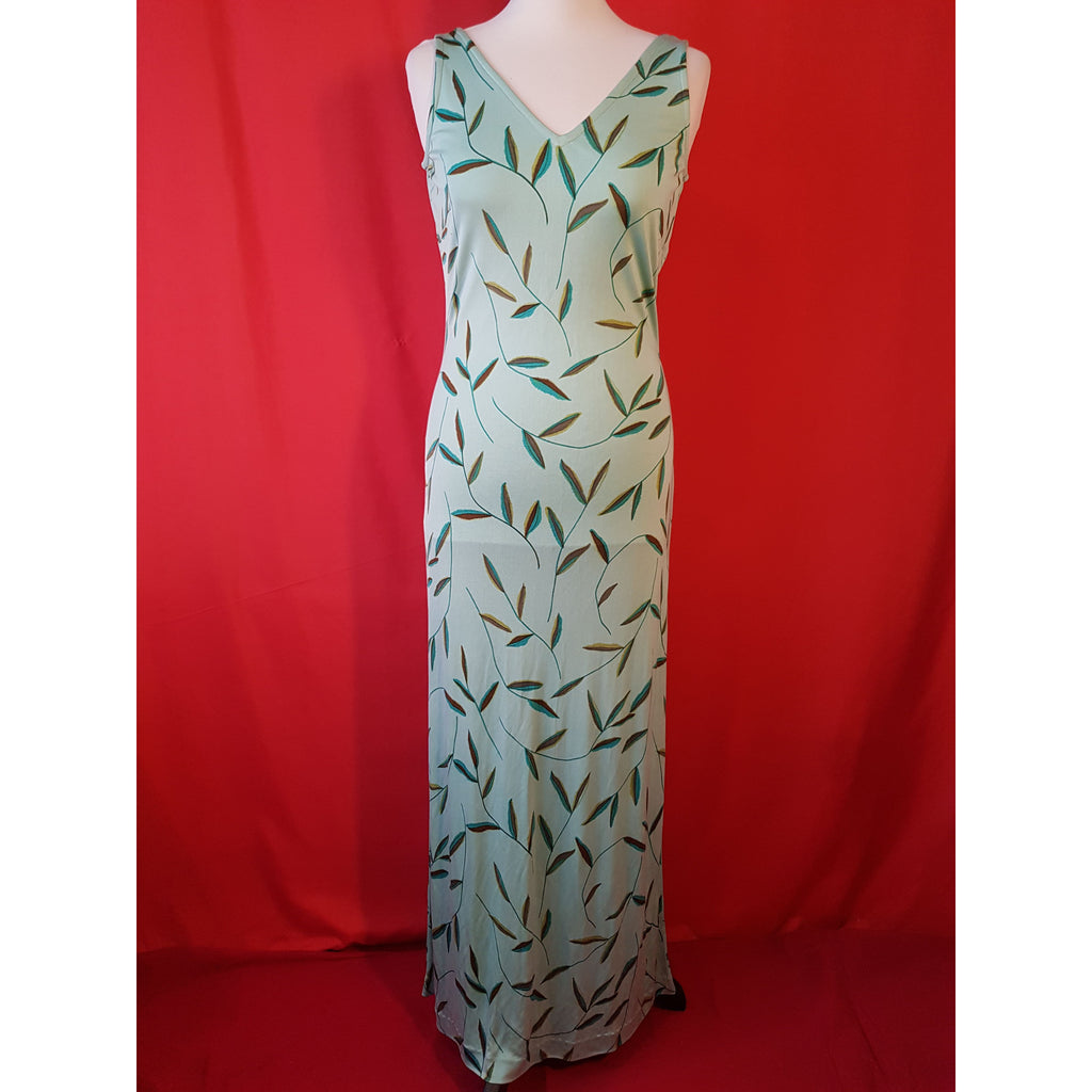 Monsoon Twilight Light Green Long 100% Silk Dress Size 12