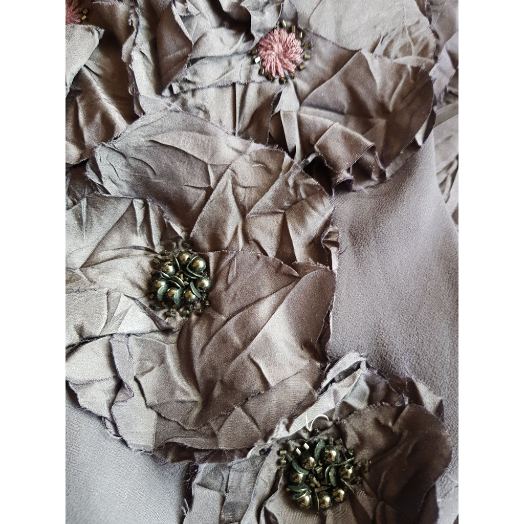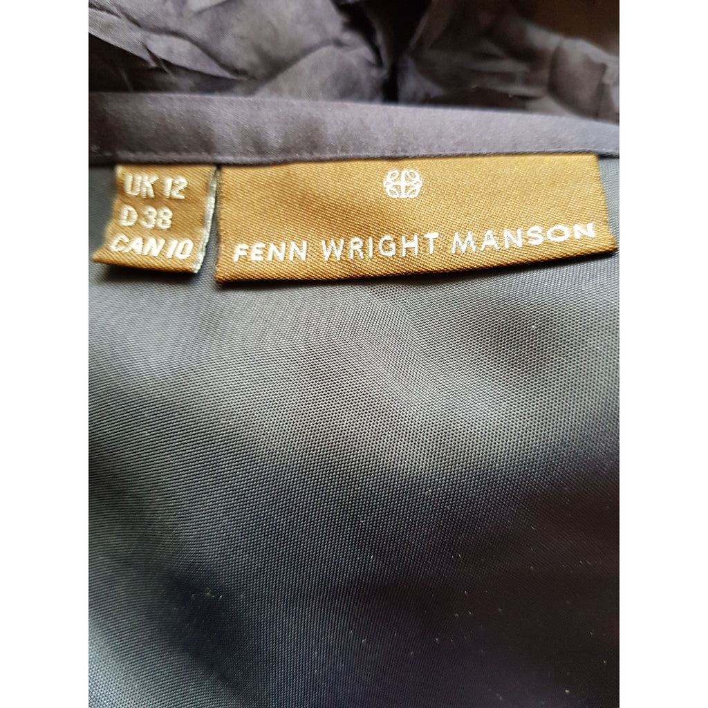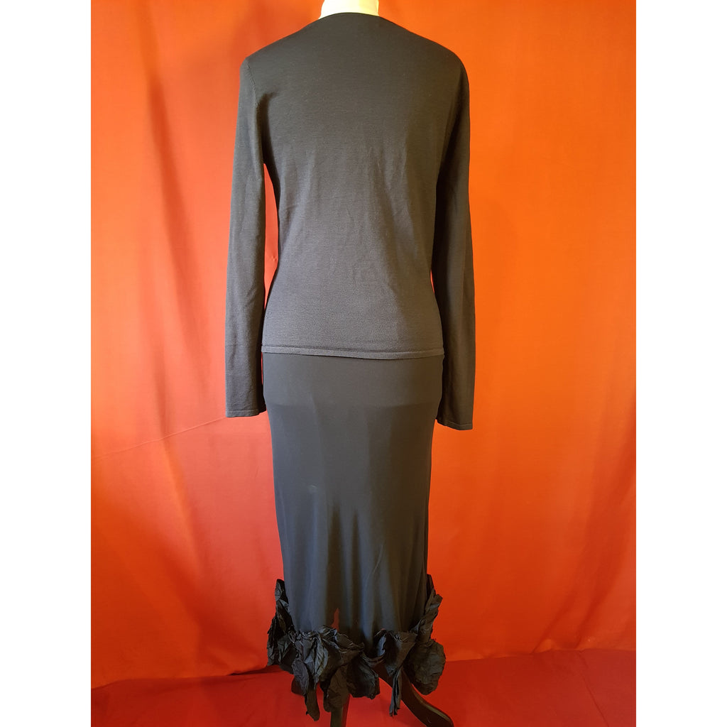FENN WRIGHT MANSON Black Silk Skirt Suit Flowers Embellished Size 12