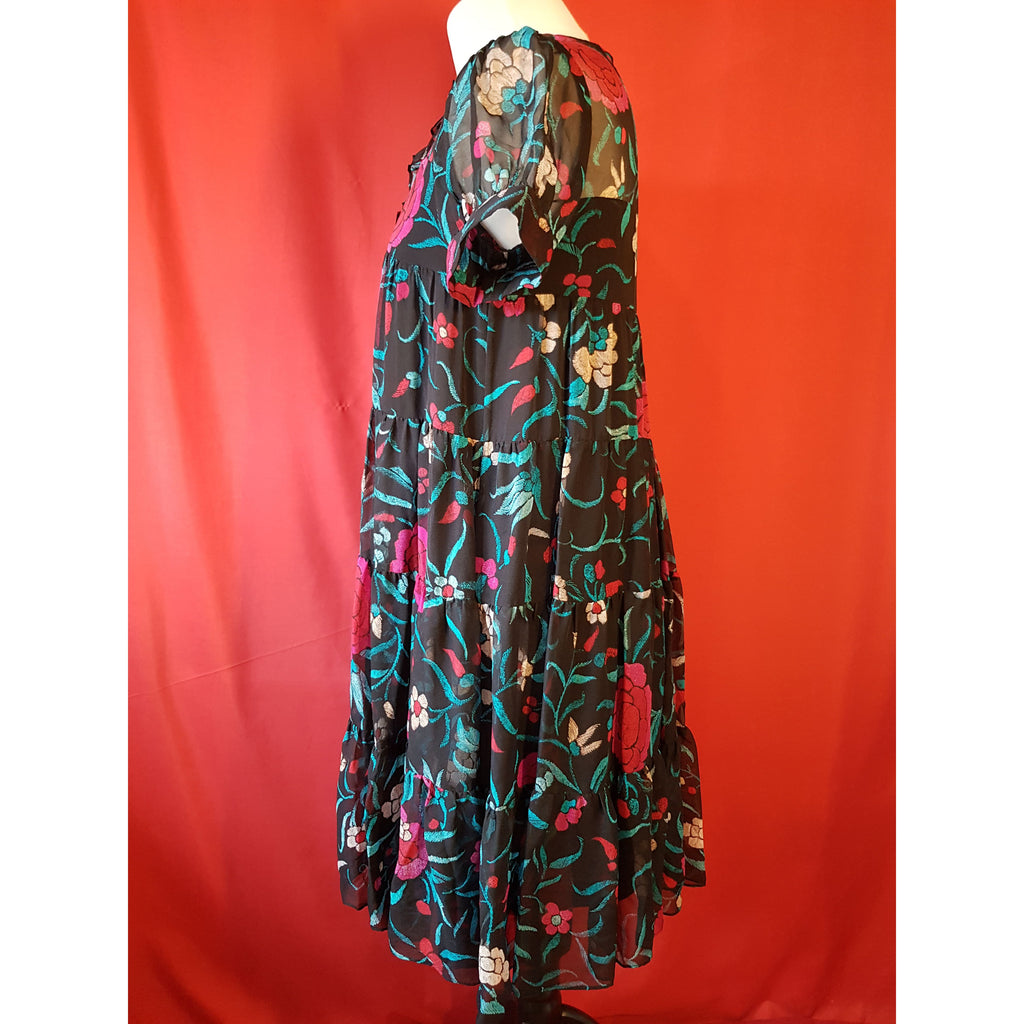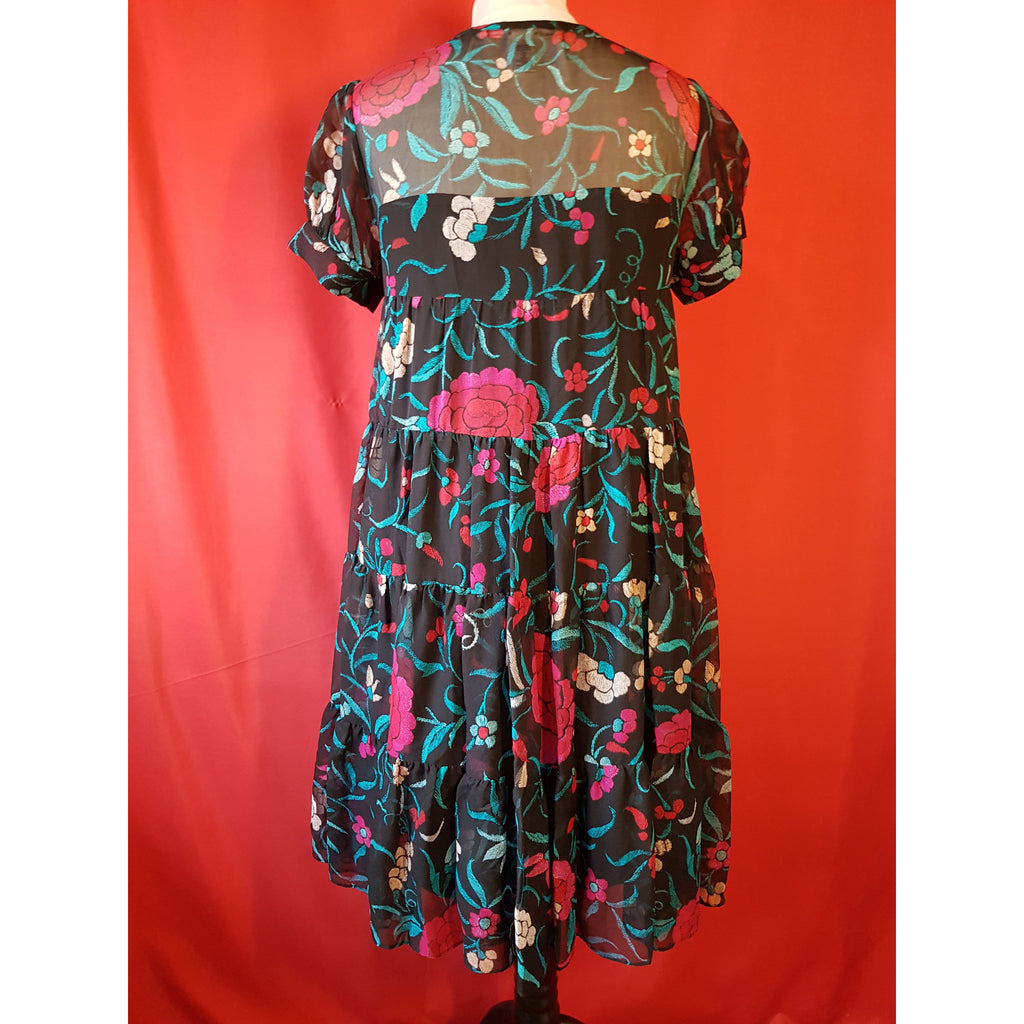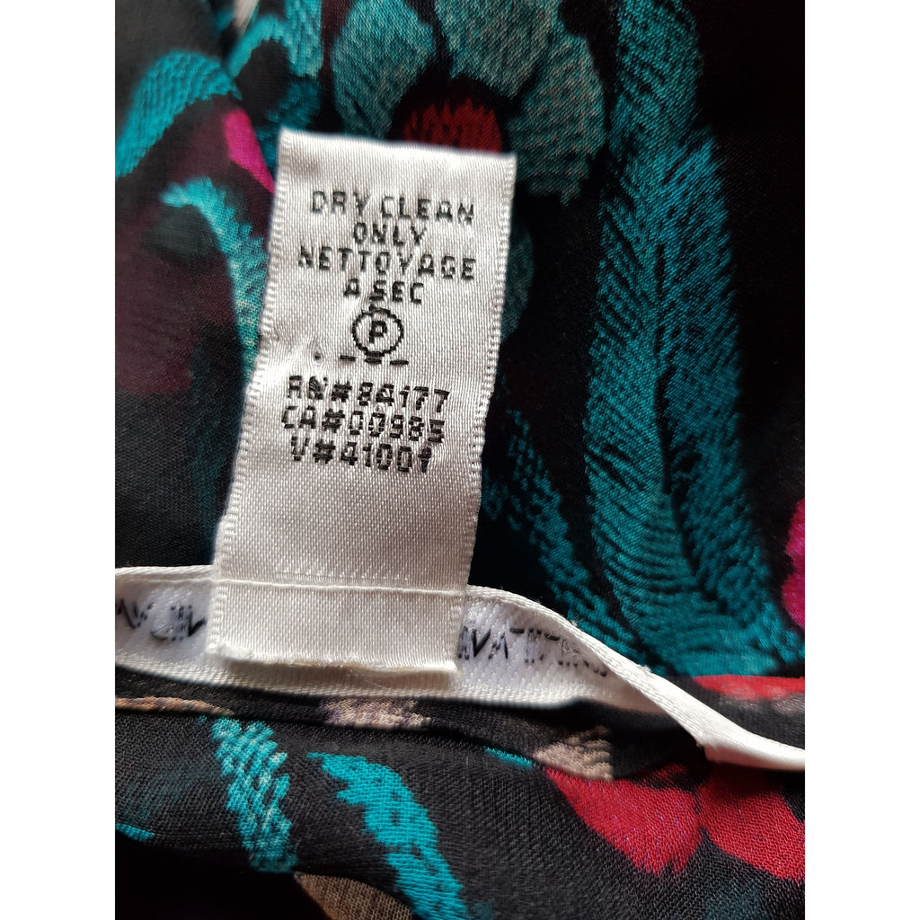 DIANE von FURSTENBERG Black Red Green Floral Print 100% Silk Dress Size 4 / S